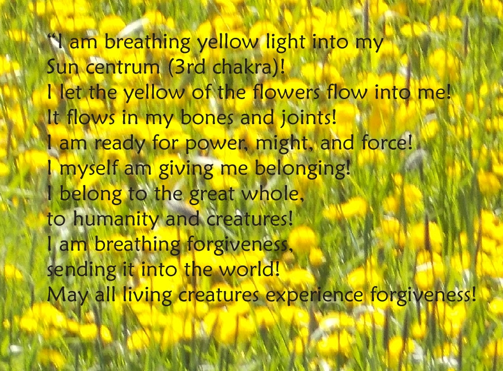 »Ich atme gelbes Licht in mein Sonnen-Zentrum (drittes Chakra)!