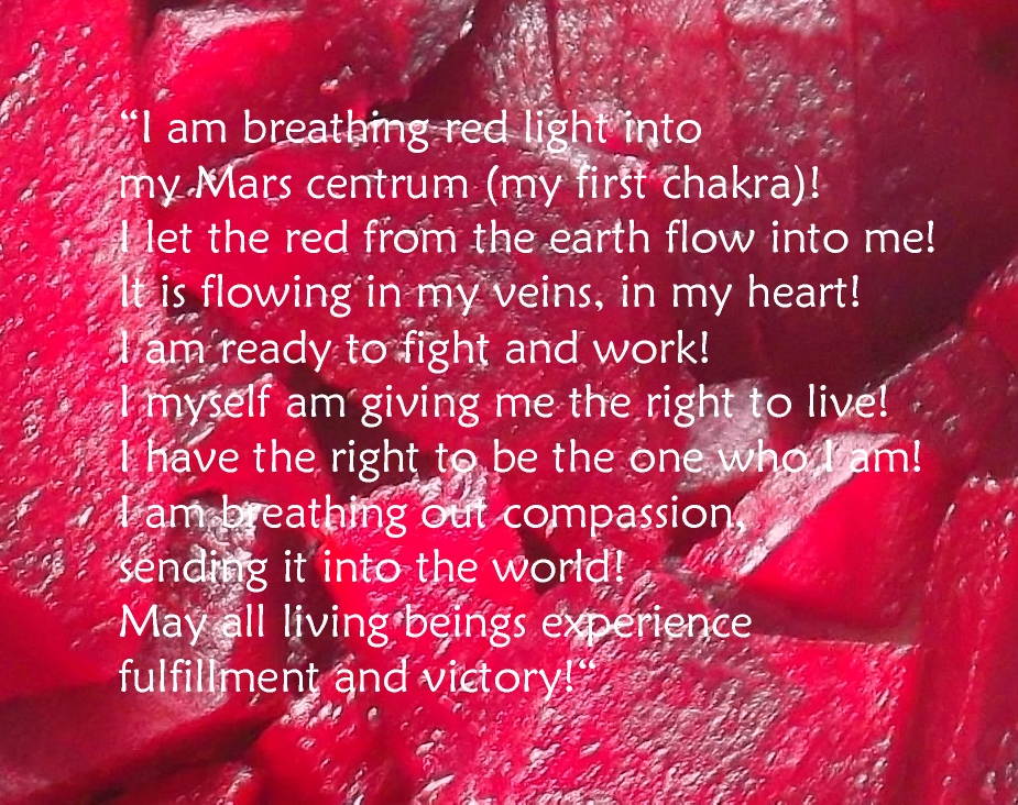 »Ich atme rotes Licht in mein Mars-Zentrum (erstes Chakra)!